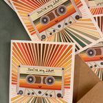 Retro Cassette Tape “You’re My Jam” blank greeting card for music lovers and jam band enthusiasts
