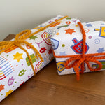 Gift-giving is a thoughtful, mindful activity that comes from the heart. It is an act of gratitude, compassion, and love. When you wrap your gift, mindfully consider the person to whom you are giving. It is a wonderful way to deepen connections and express caring energy. These high quality REVERSIBLE wrapping paper sheets feature hand-drawn (by Debby of Mindfulnice) Rainbow Hanukkah dreidles on one side with a coordinating menorah pattern on the reverse side. 2 sheets are included with your purchase. This listing is for the Hanukkah rainbow dreidles and menorahs gift wrap, as shown. Please see my other wrapping paper lisitings. These are coordinating patterns and look great together! These sheets will be shipped in a tube so there will be no creases in the sheets.