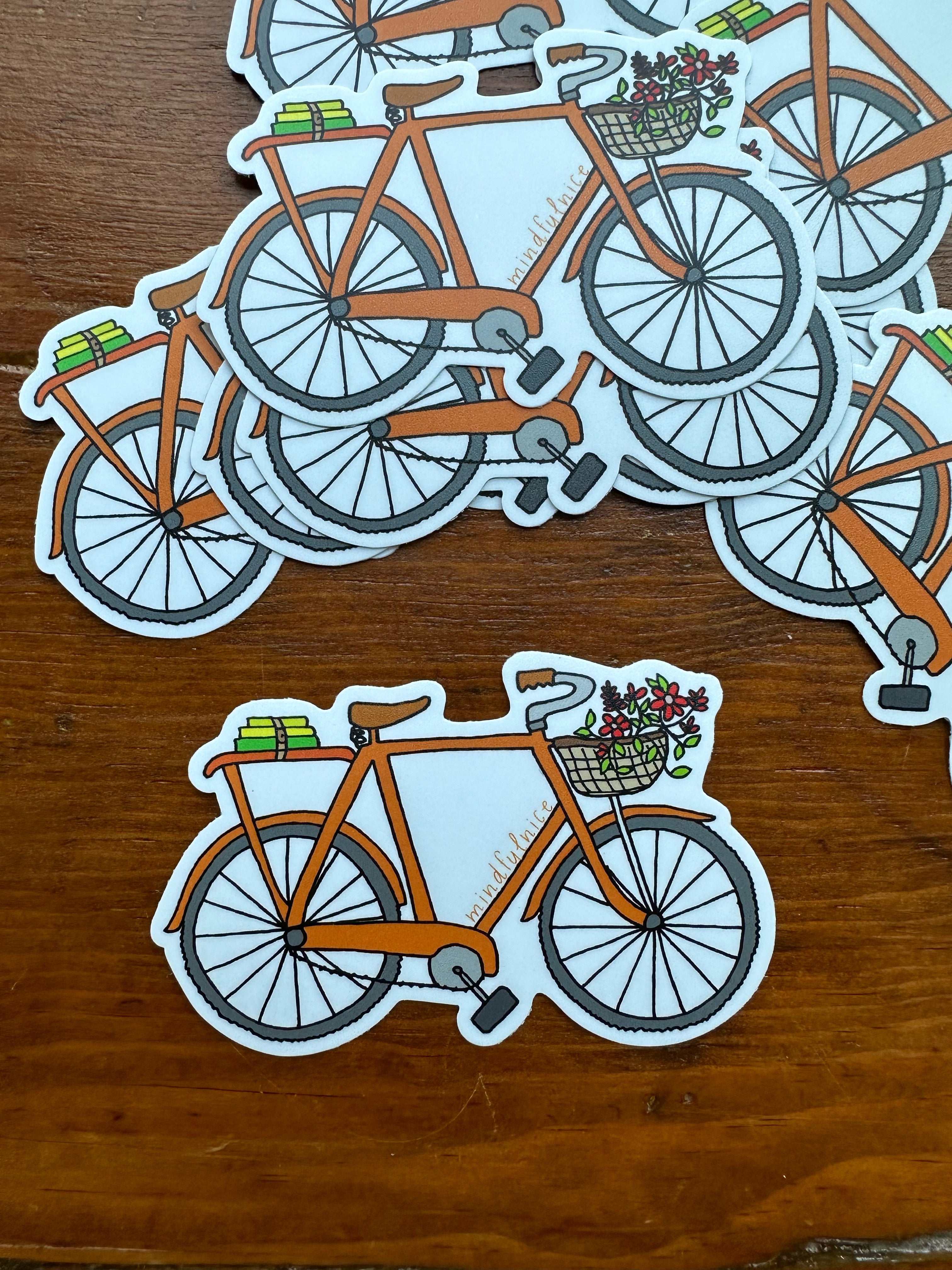 This bicycle sticker design was hand drawn by Debby of Mindfulnice and coordinates perfectly with the mindful messages bicycle “enjoy the journey” greeting card, also sold (separately) by Mindfulnice.