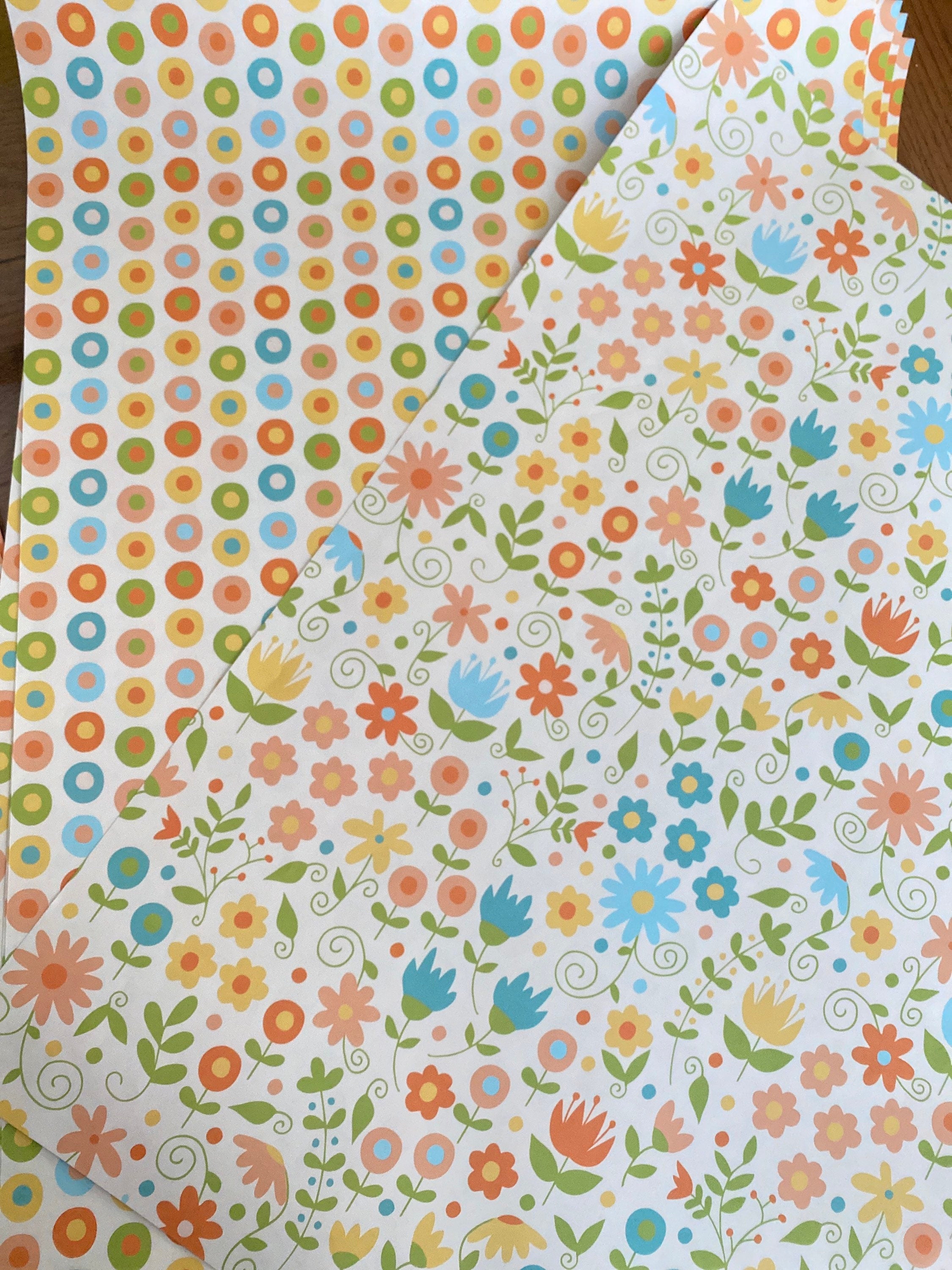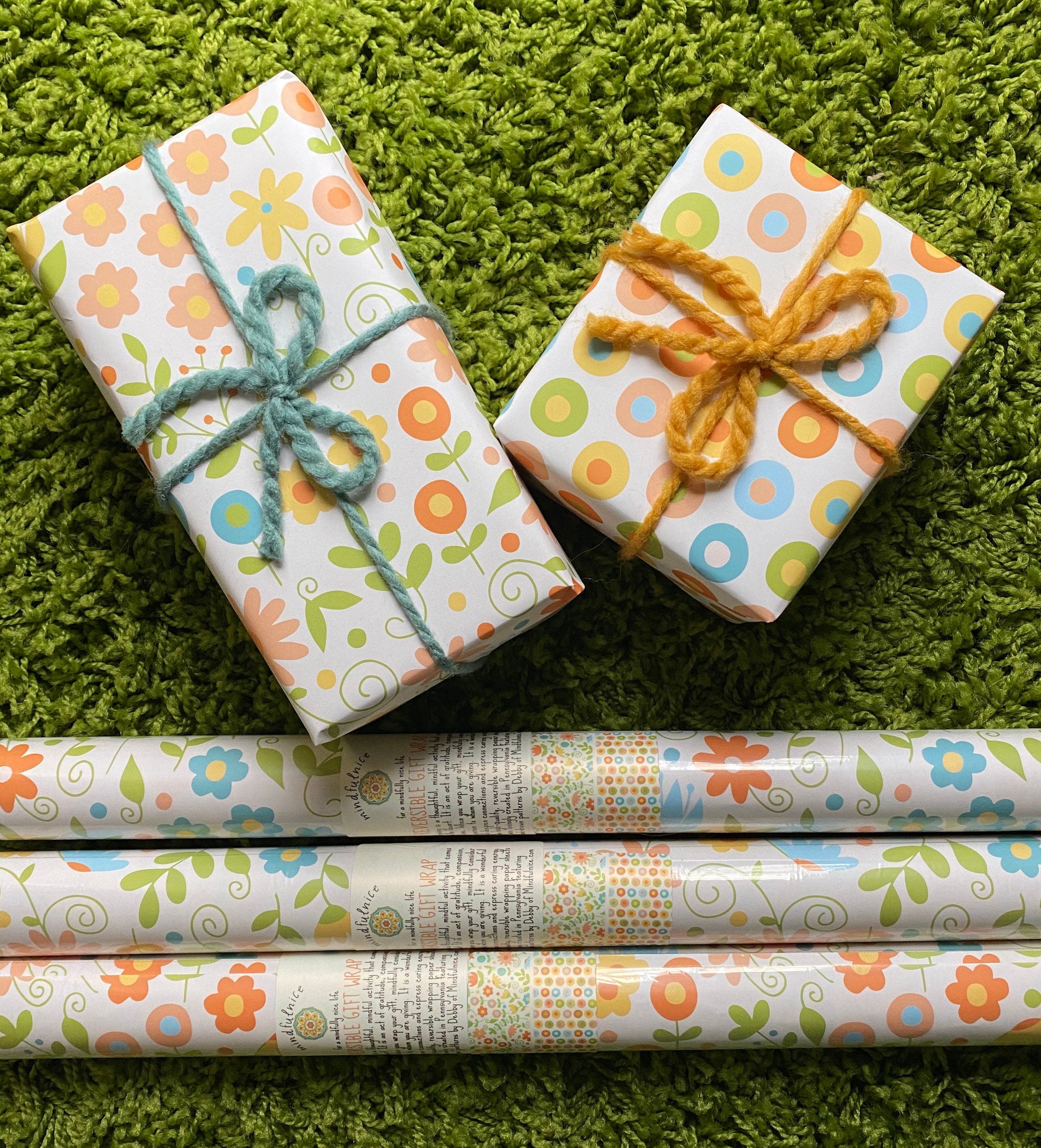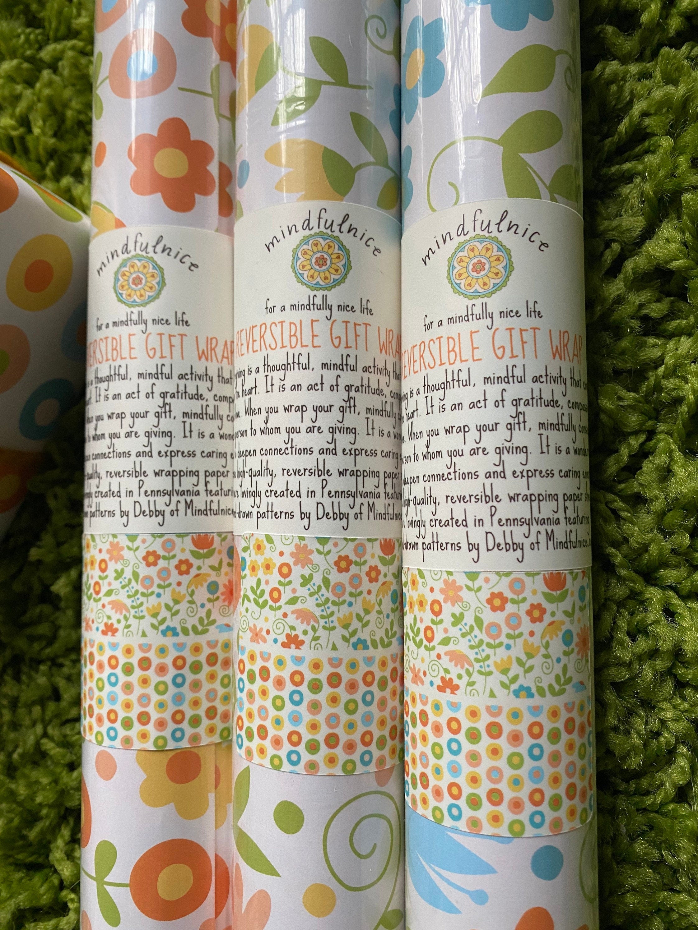 These high quality REVERSIBLE wrapping paper sheets feature hand-drawn (by Debby of Mindfulnice) floral motifs with coordinating patterns on the reverse side.