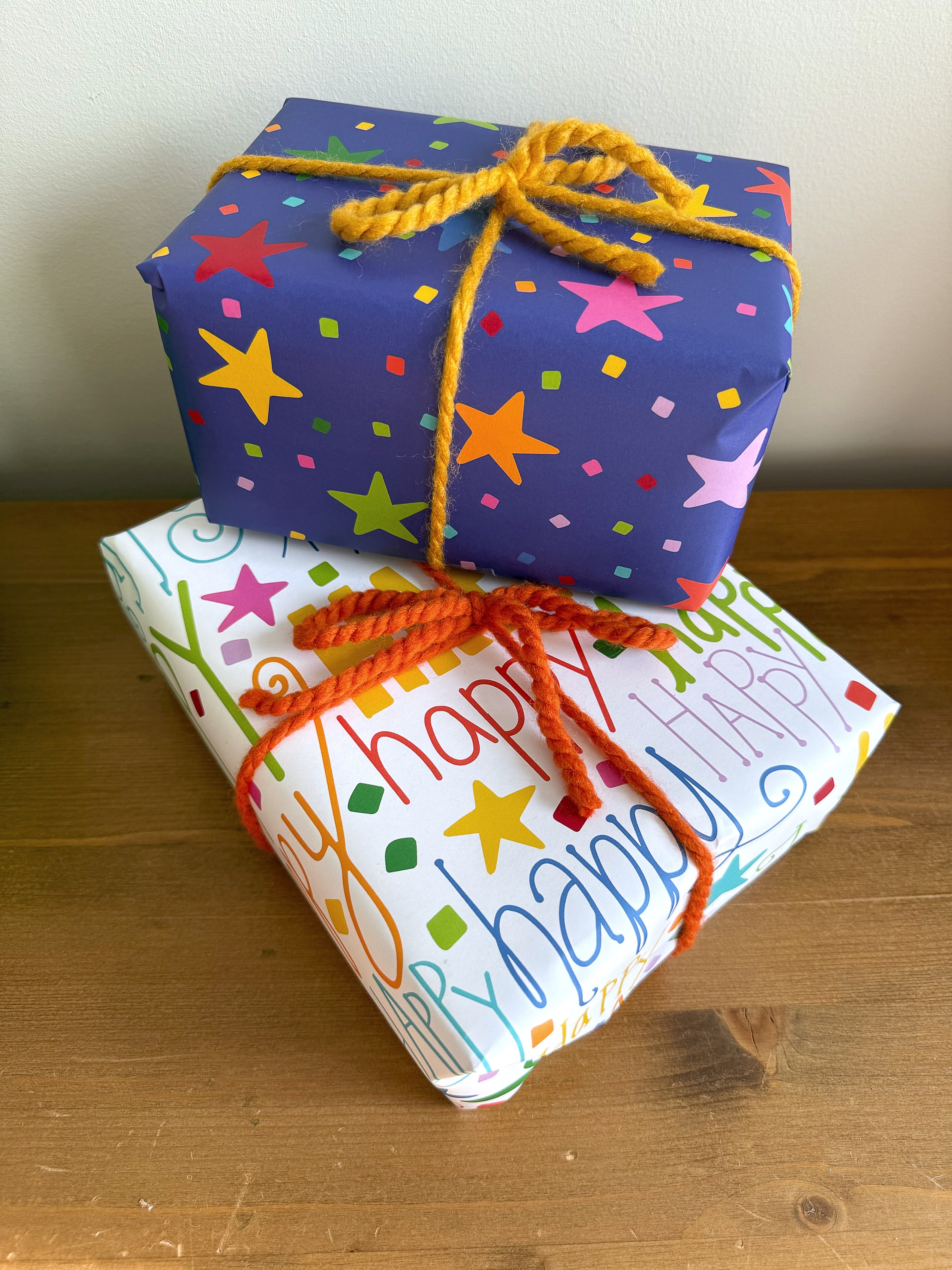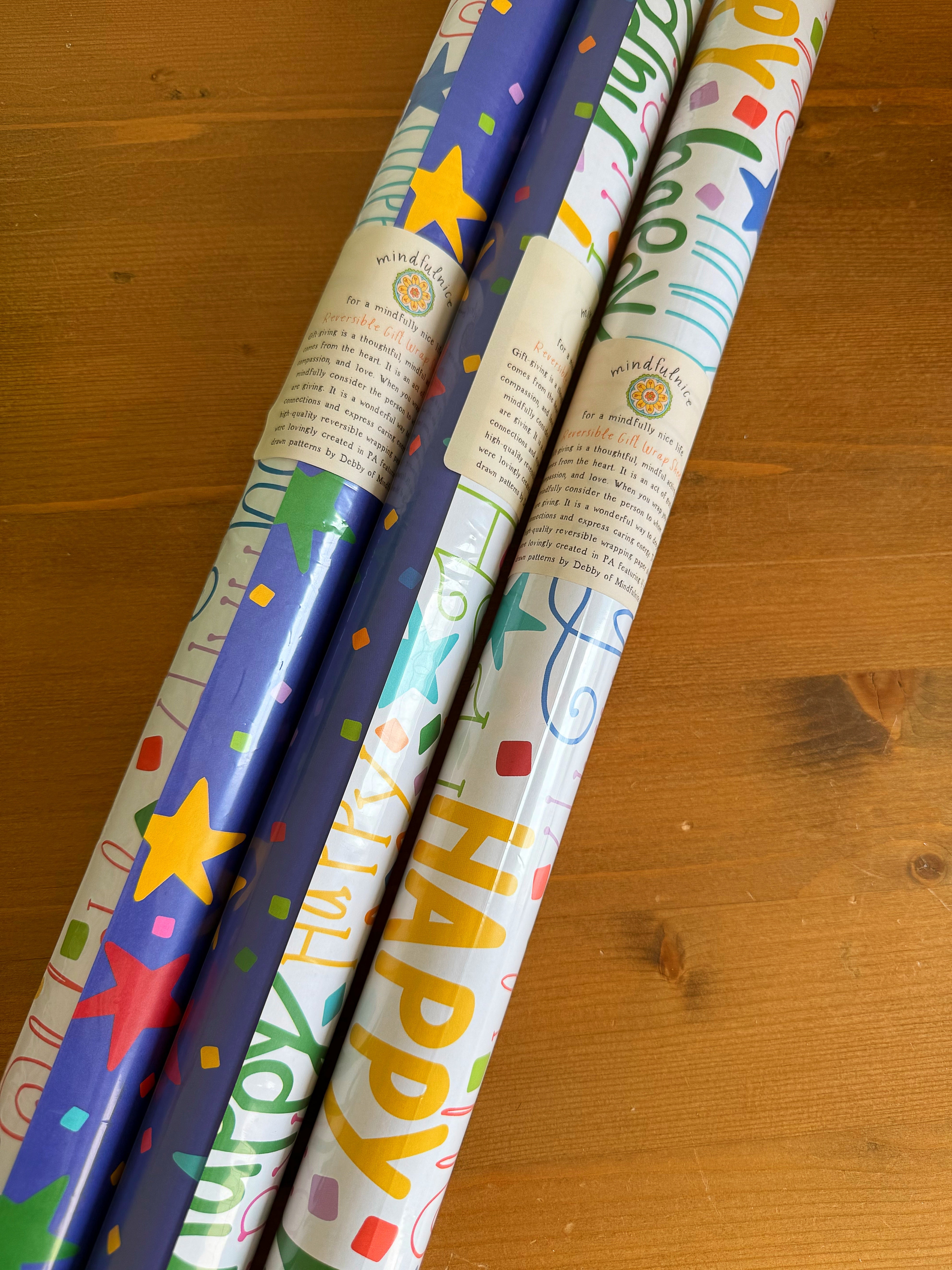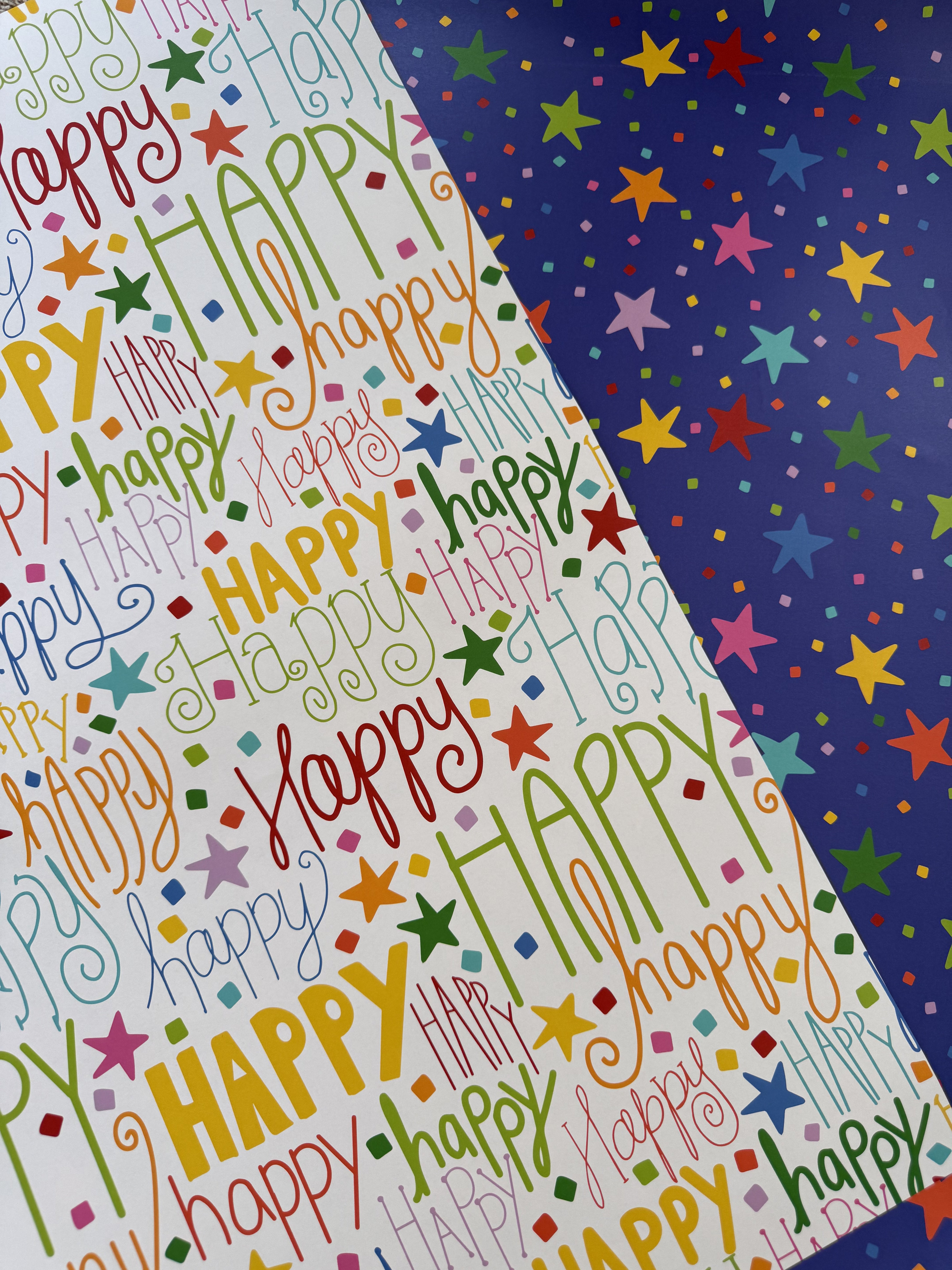 Reversible Happy & Stars Gift Wrapping Paper Sheets